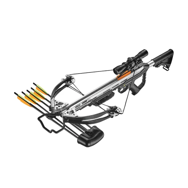 Samostrijel CR-054CBR Torpedo dolazi s impresivnom naponskom snagom od 185 lbs, što ga čini jednim od najsnažnijih modela u svojoj klasi. Njegova carbon camo konstrukcija pruža vrhunsku trajnost i izdržljivost, dok dizajn u kamuflažnim bojama omogućava neprimjetnost u prirodi. Opremljen je compound tehnologijom, koja olakšava napinjanje tetive i povećava brzinu strelica, čineći ga idealnim za lov i precizno gađanje na većim udaljenostima. Koristi strelice od 20 inča, pružajući odličnu balistiku i prodornost.